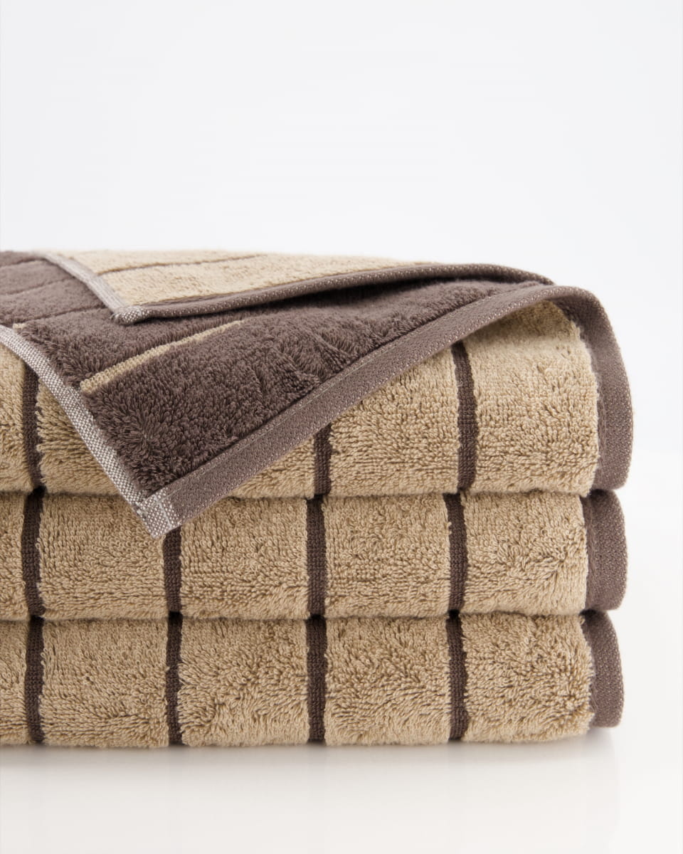 Natuurlijke kleuren maken de sportieve Balance Doubleface handdoeken aantrekkelijk en bieden een grote keuze aan maten voor elke gelegenheid. Lichte en donkere kleuren creëren een mooie double-face look.