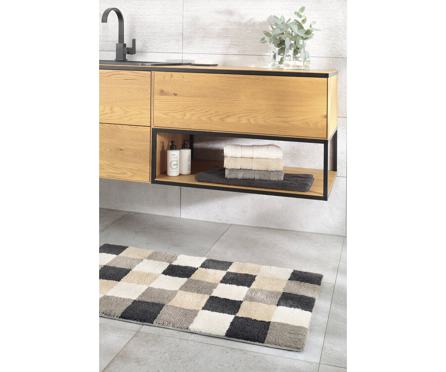 Breng comfort en stijl in je badkamer met de Cawö Home Badteppich Square 1011 in de zachte Nature tint. Deze hoogwaardige badmat is gemaakt van 100% gekamde katoen met een flauschige, zachte structuur die heerlijk aanvoelt onder de voeten en vocht effectief opneemt. Het moderne, subtiele karo-design past moeiteloos in diverse badkamerstijlen en geeft een rustgevende uitstraling. Dankzij de antislip-achterzijde, wasmachine- en drogerbestendigheid is hij niet alleen elegant, maar ook praktisch voor dagelijks gebruik. Perfect om je bad- of doucheruimte compleet te maken met comfort en duurzaamheid.