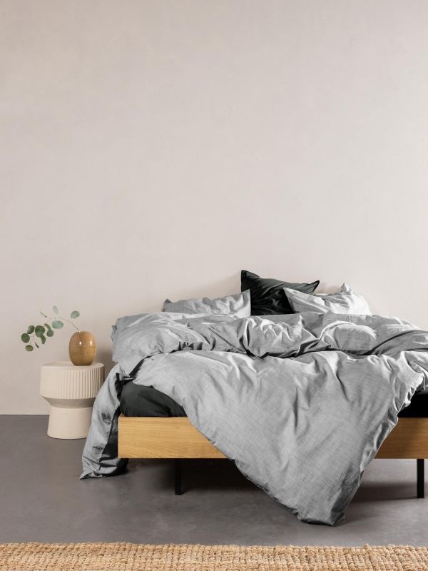 Omarm de nacht met dekbedovertrek Jule. Jule Anthracite heeft haar verfijnde en stoere uitstraling te danken aan haar rustgevende kleur en unieke textuur. Het dekbedovertrek is gemaakt van 100% biologisch katoen. Een speciale chambray weeftechniek zorgt voor subtiele, effen uitstraling. Bij deze techniek worden gekleurde en ongekleurde garens gecombineerd. Dit zorgt voor een natuurlijk, licht gemêleerd effect dat een prachtige diepte toevoegt aan de effen kleur. Perfect voor een moderne slaapkamer die graag rust en eenvoud uitstraalt.