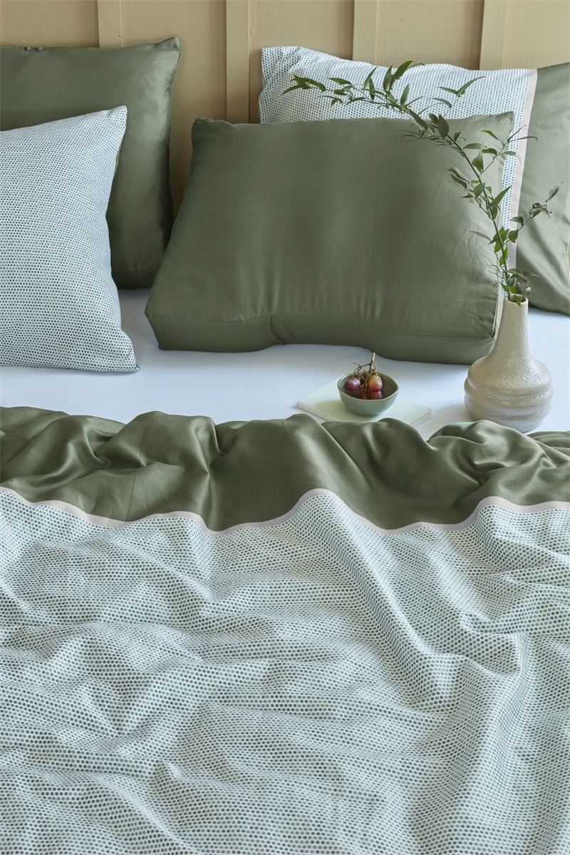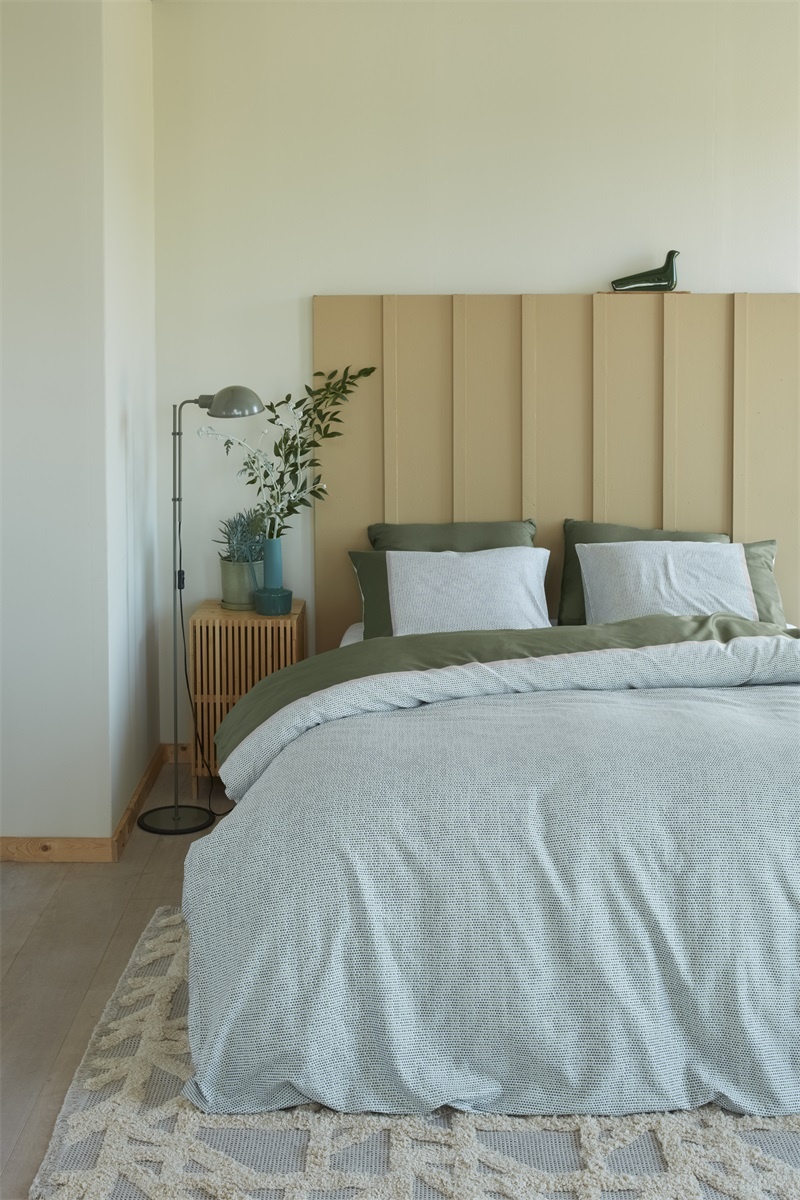 Dekbedovertrek Laurel Green van Silvana is in een fijne kwaliteit 100% katoen satijn geweven. Prachtig grafisch patroon enerzijds, anderzijds uni maakt dit een tijdloos uni dessin. Een Silvana dekbedovertrek van fijne kwaliteit voor jarenlang plezier.