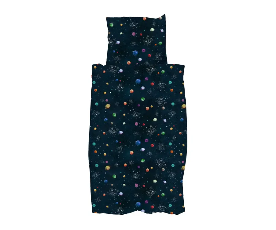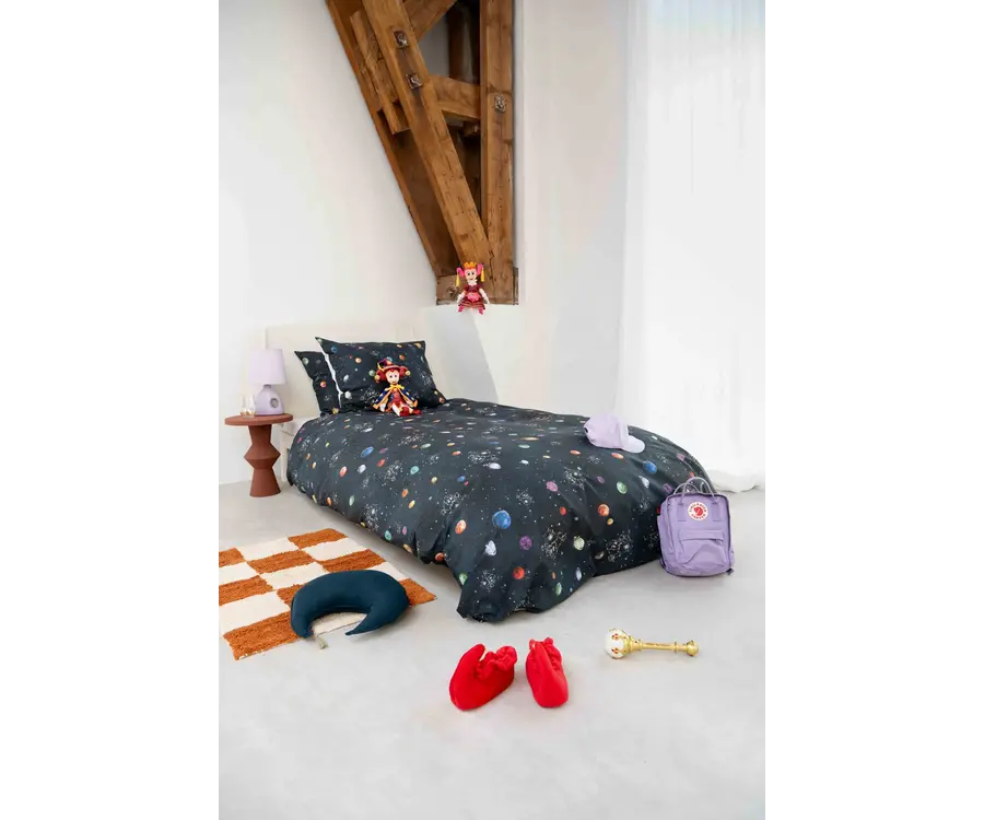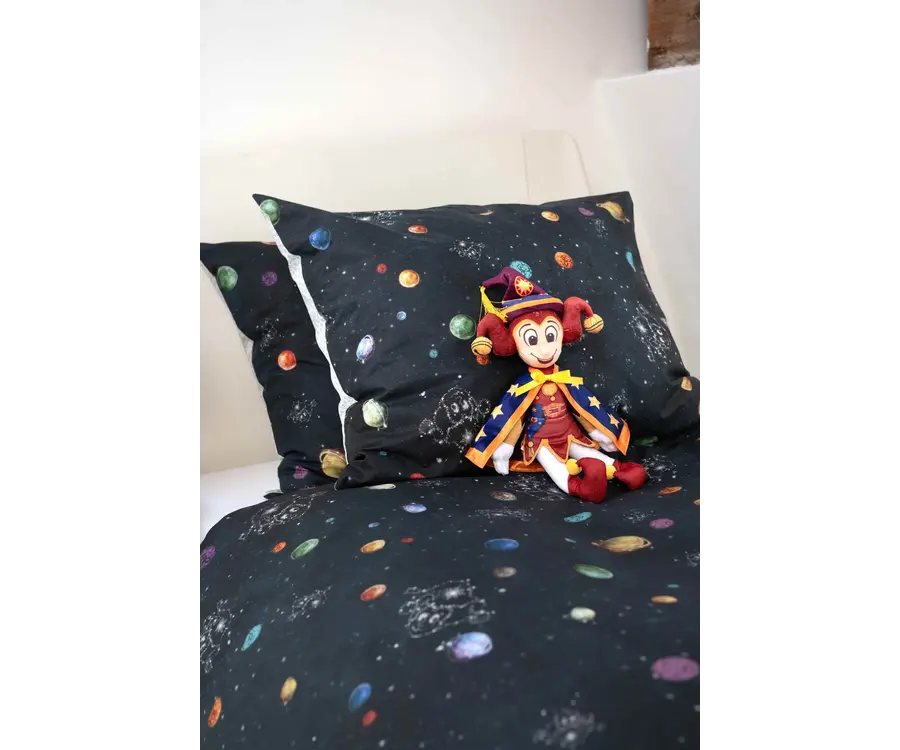 Alsof je zelf op pad bent met Pardoes, door een sterrenhemel vol kleurrijke planeten en magie. Onder dit dekbed kom je elke nacht een stukje dichter bij het Paleis der Fantasie.